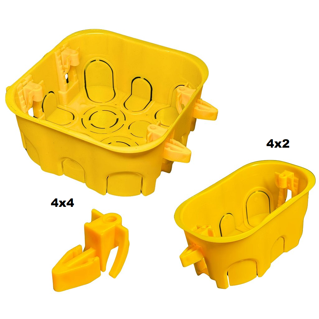 Caixa drywall 4 X 2 foi desenvolvida com 6 saídas e a caixa drywall 4 x 4 com 12 saídas .