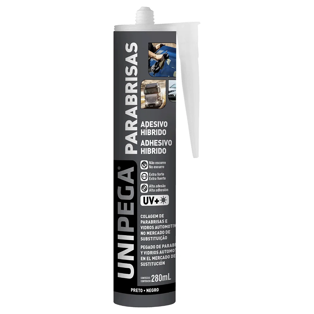 Adesivo híbrido monocomponente tixotrópico com alto módulo indicado para colagem de parabrisas e vidros automotivos no mercado de substituição.