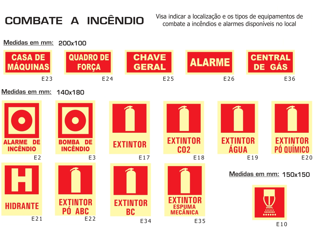 As Placas indica a localização e os tipos de equipamentos de combate a incêndio e alarmes no local e Proibi e coibi ações capazes de conduzir o inicio do incêndio ou agravá-lo.