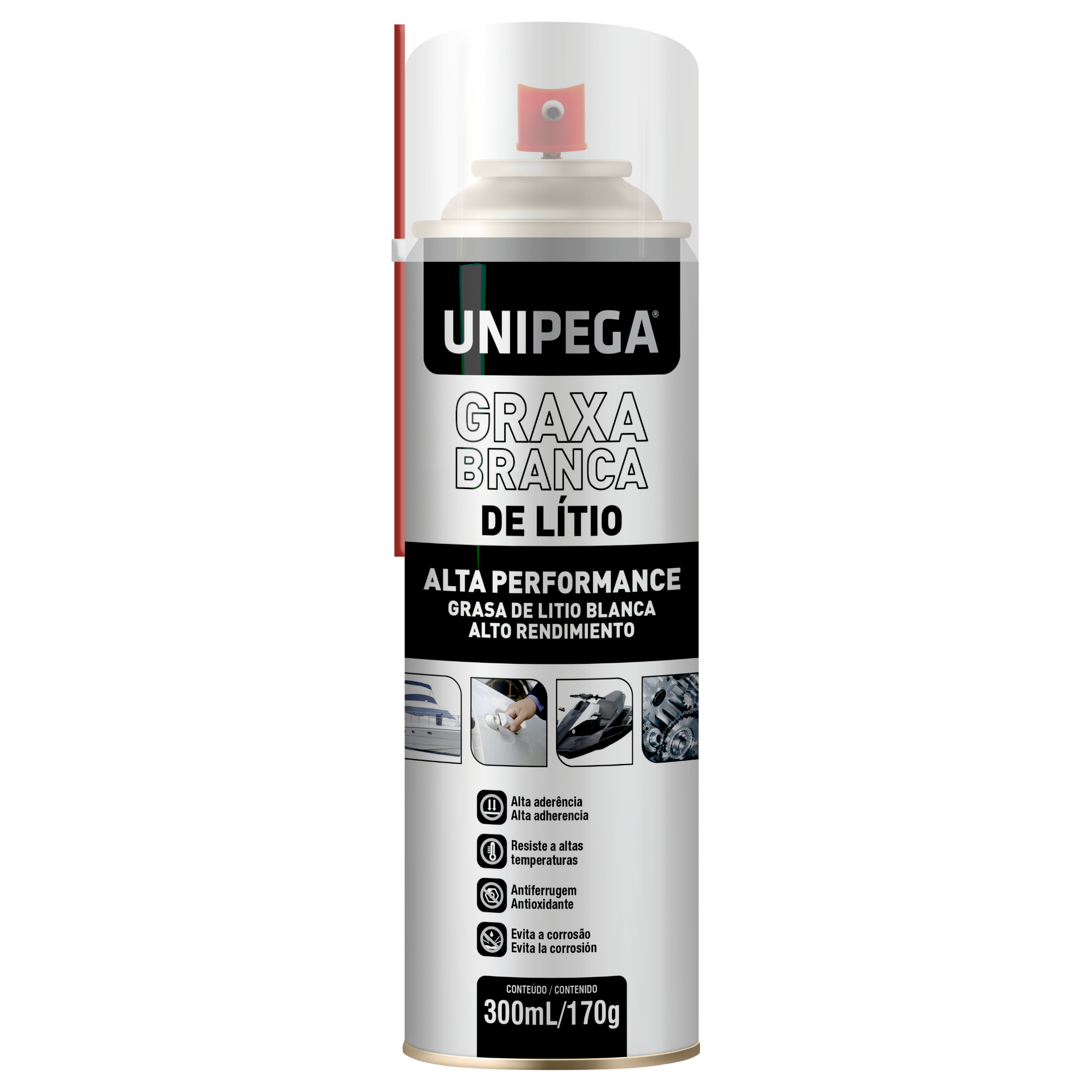 Graxa Branca Unipega é uma graxa lubrificante a base de sabão de lítio, óleos básicos minerais, aditivos anticorrosivos e agente de adesividade. Sua versatilidade se dá através de suas múltiplas aplicações. Possui alta consistência e poder de lubrificação, excelente aderência na superfície aplicada (o que permite uma lubrificação mais duradoura), excelente proteção contra a corrosão, boa estabilidade mecânica, química e uma ótima resistência a lavagem por água e vapor. Também auxilia contra a oxidação natural da graxa, mantendo as características originais da peça por mais tempo.