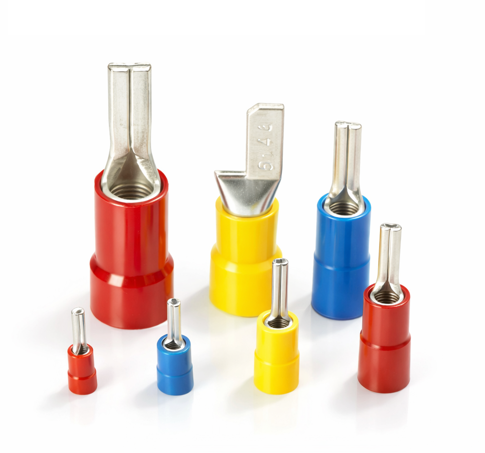 Peças utilizadas na terminação de condutores, com capa plástica para isolação na região da conexão do condutor com o terminal. Produzidos em cobre eletrolítico, com acabamento estanhado.