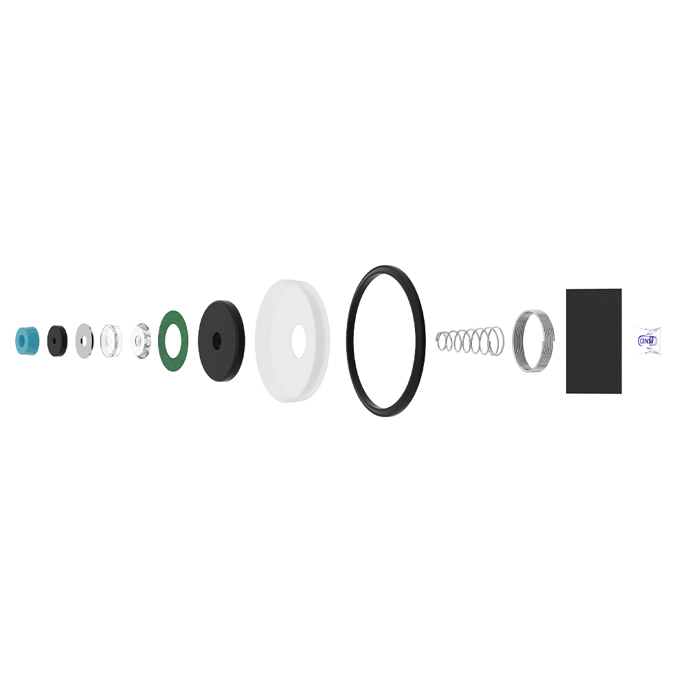Composição: Aço inoxidável, elastômeros, liga de alumínio, papel abrasivo, papelão hidráulico e plástico de engenharia.