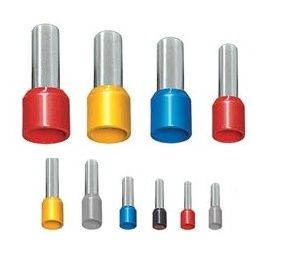 Peças utilizadas na terminação de condutores, com capa plástica para isolação na região da conexão do condutor com o terminal.